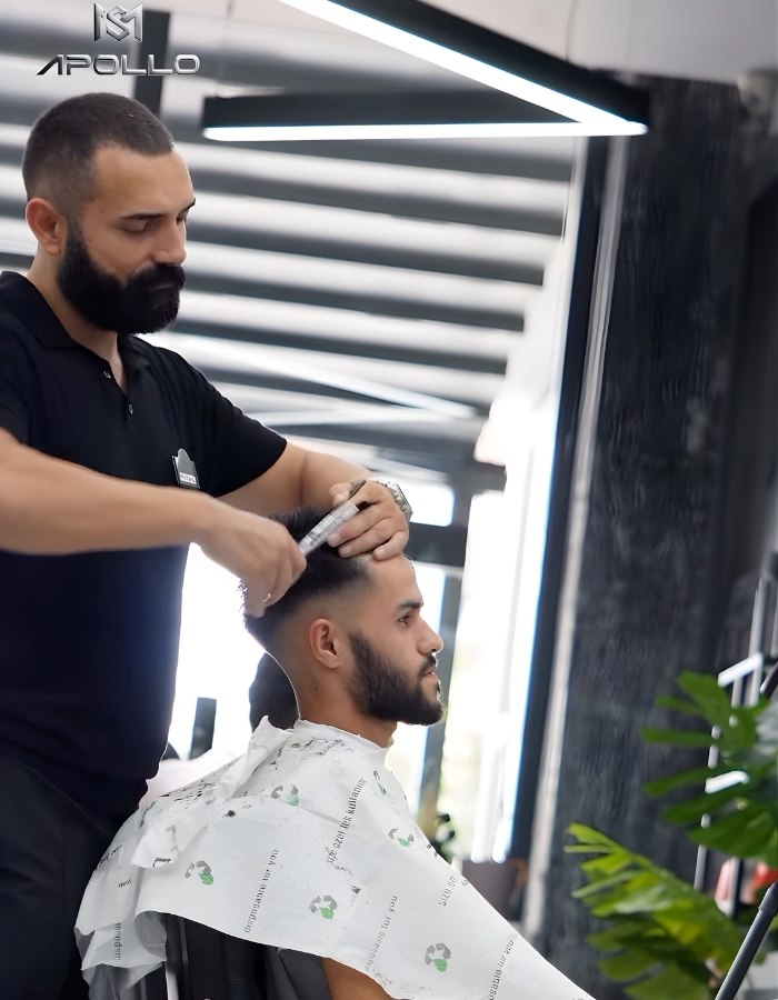 Salonumuzda kullanılan her teknik, modern trendlerle birleşen ustalıkla uygulanır. Konforlu ortamımız, hijyenik çalışma alanlarımız ve müşteri memnuniyetini merkeze alan yaklaşımımızla Apollo, erkek bakımında kendinizi özel hissedeceğiniz bir adrestir. Tarzınıza en uygun görünümü yaratmak için profesyonel ekibimiz her zaman yanınızda.